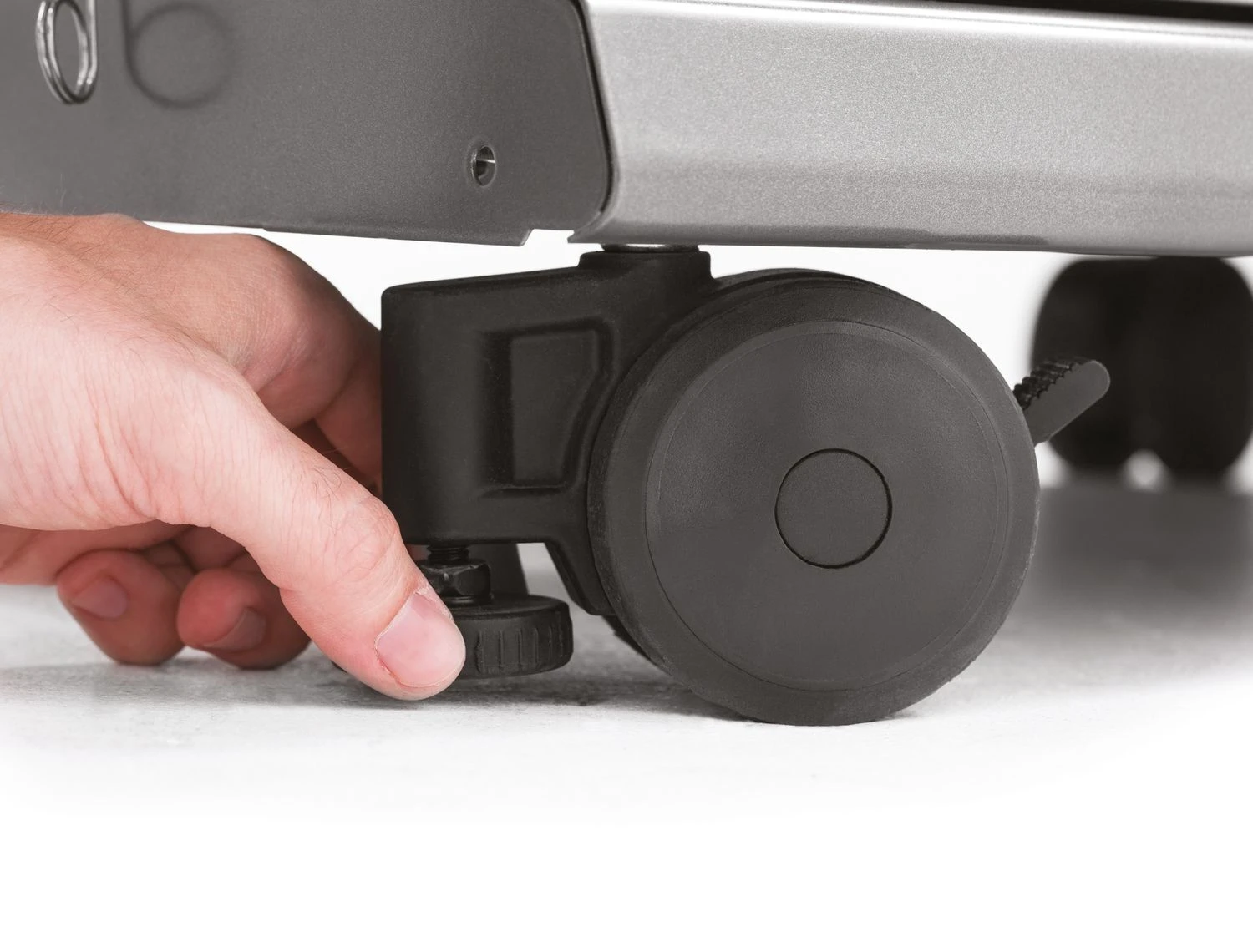 Das Fahrgestell besteht aus vier Lenkrollen, die höhenverstellbar sind und sich arretieren lassen. So können Sie den Grill einerseits ganz bequem an einen Einsatzort transportieren und andererseits ihn dort dann sicher und fest aufstellen.