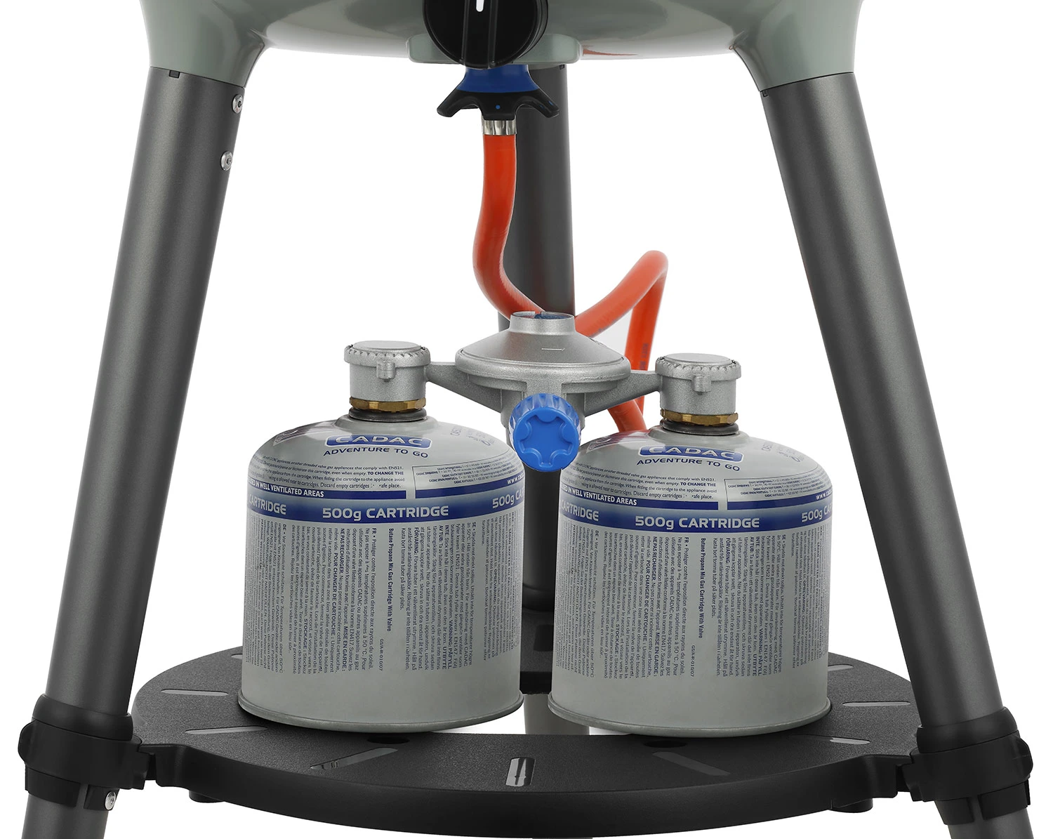 Der Campinggrill kann wahlweise mit der Gassteckdose oder Gaskartuschen betrieben werden. Hierzu muss lediglich das passende Anschluss-Set ausgewählt werden:
