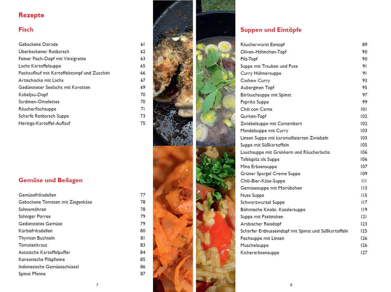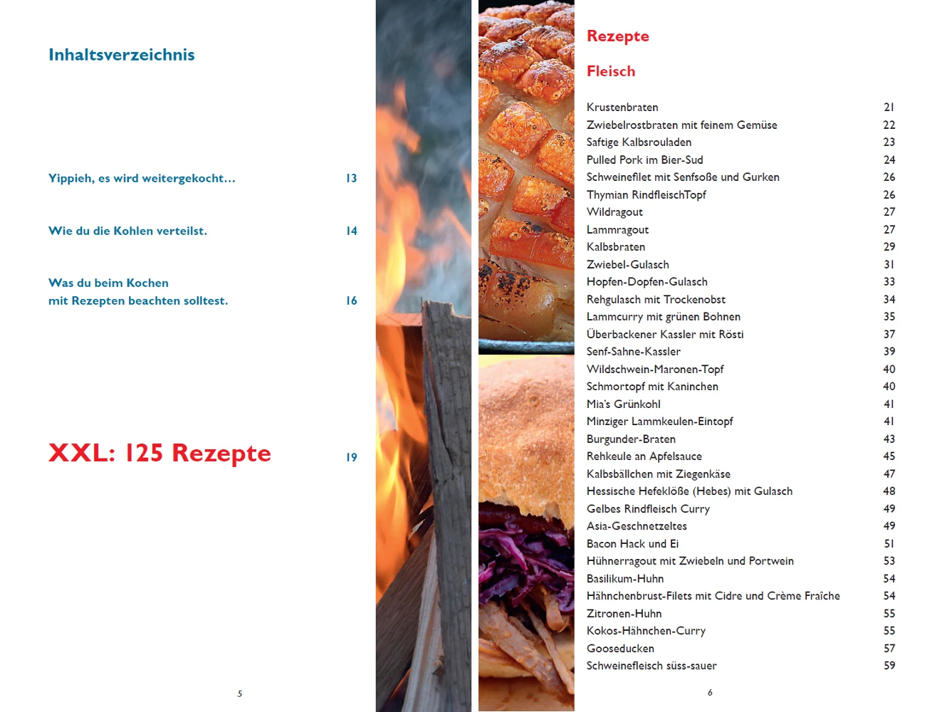 Nach einer kurzen Einleitung mit grundlegenden Infos zur Kohlenverteilung geht es also direkt los mit tollen Rezepten von Schweinefilet, Lammragout, Burgunder Braten, Hessischen Hefeklösen über Zitronen-Huhn bis hin zu Asia-Geschnetzeltem oder Lammcurry.