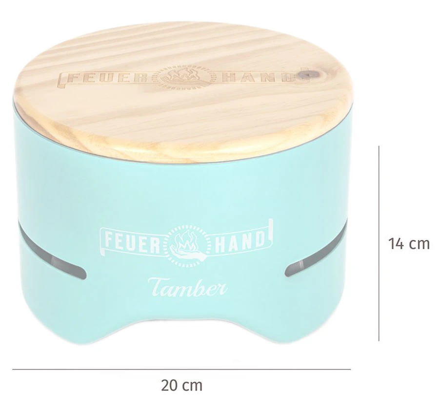 Mit dem farbenfrohen Feuerhand Tamber Mini-Tischgrill bereiten Sie kleine Köstlichkeiten ganz gemütlich direkt am Tisch zu. Dabei überzeugt der kleine Holzkohlegrill mit durchdachten Details.