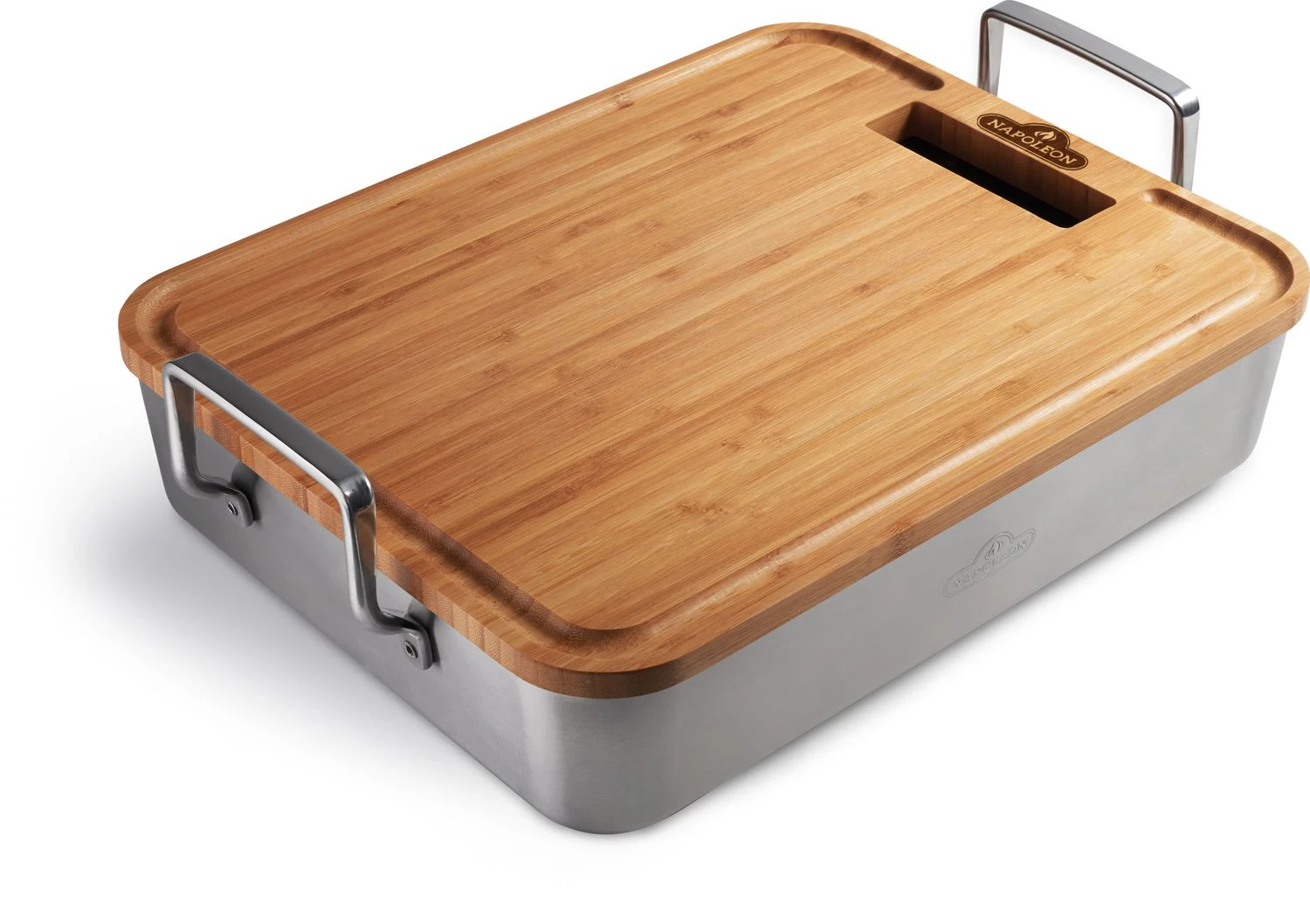 1 x Napoleon Edelstahl Bräter inkl. Schneidebrett Bambus