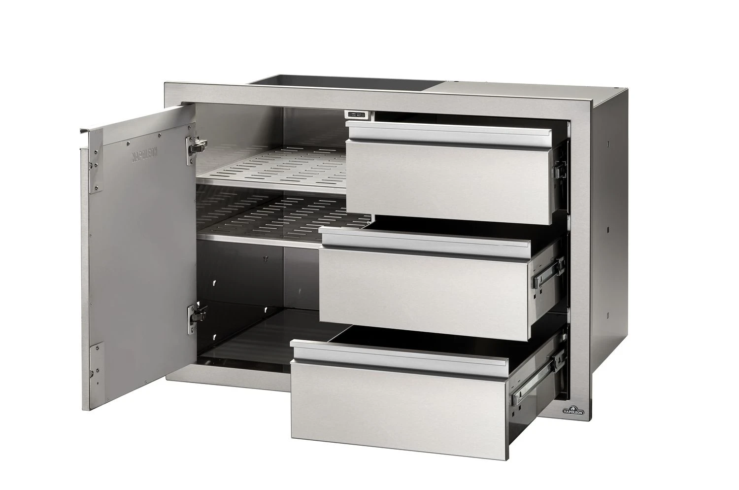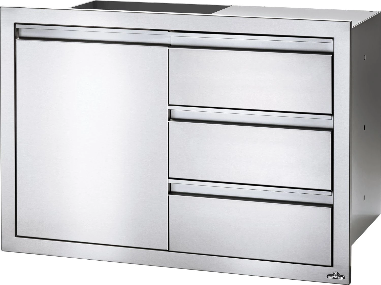 Der Napoleon Einbauschrank mit Tür und 3er Schubladen bietet genügend Stauraum für sämtliches Grillzubehör und alles was in der Grillküche in unmittelbarer Nähe aufbewahrt werden soll.