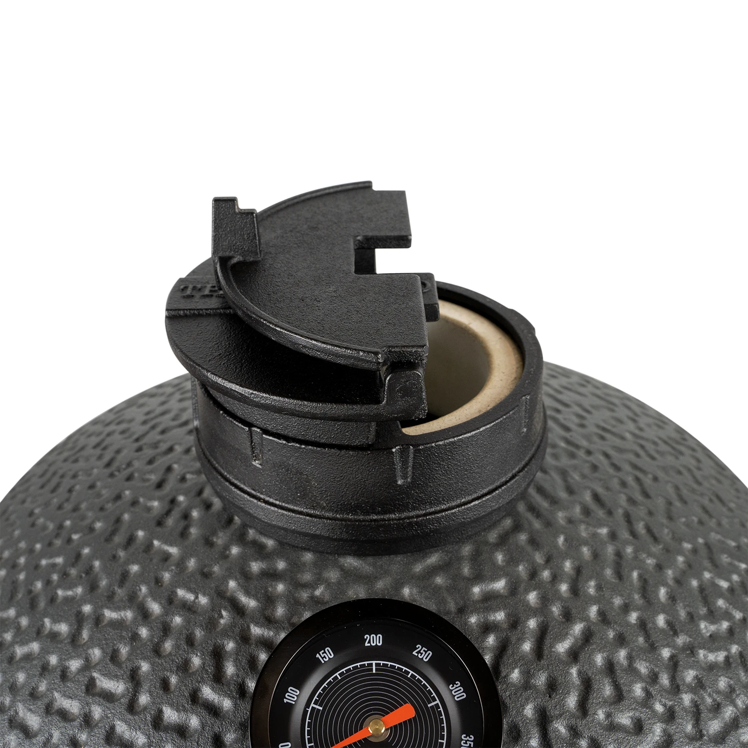 Zum Anheizen werden zunächst die beiden Ventile komplett geöffnet. Das ist zum einen der Lüftungsschieber im unteren Bereich des Kessels, und zum anderen das Präzisions-Deckelventil, direkt oben auf der Öffnung der Kuppel.